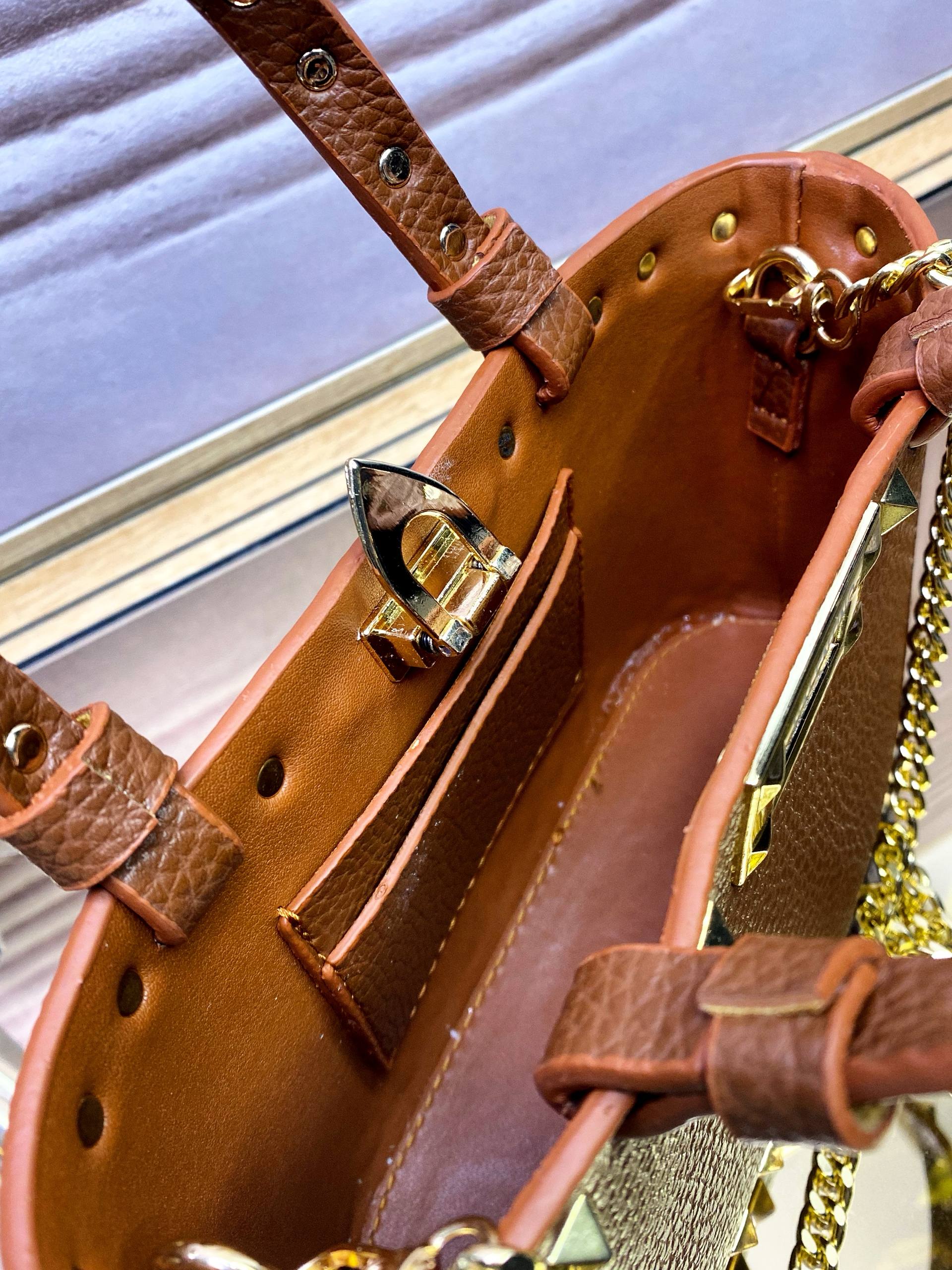 Valentino tarzı, Rockstud detaylı, yeni sezon elde ve omuzda taşınabilir mini–orta boy çanta.